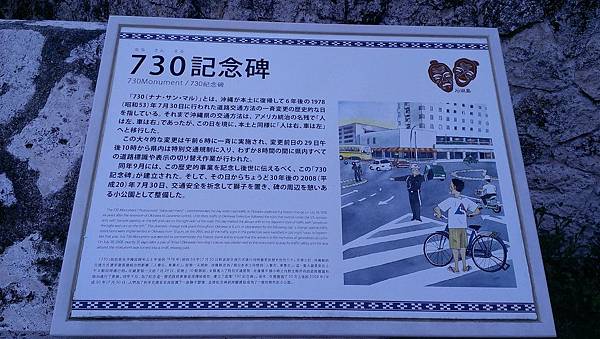 「730」為沖繩回歸由日本管治後6年即1978年切換道路通行方向由靠右行駛改為靠左行駛所使用之事前運動名稱,而此名稱乃由沖繩縣全域於1978年7月30日當日正式實施切換道路通行方向而得,實施後此名稱亦成為特定通稱。